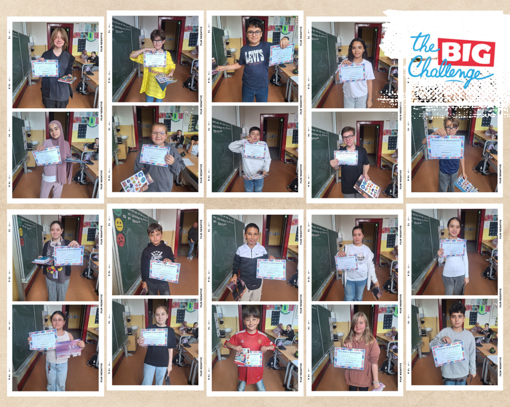 Nach langem Warten war es endlich so weit: Die Ergebnisse der Big Challenge 2025 wurden mit großer Spannung erwartet – und die Freude war riesig! Unsere Schülerinnen und Schüler freuten sich nicht nur über ihre Platzierungen, sondern auch über die attraktiven Preise: Von Medaillen für die Jahrgangsbesten über Powerbanks, Bleistifte, Schlüsselanhänger bis hin zu Postern war für alle etwas dabei. Natürlich durften auch die Teilnahmezertifikate nicht fehlen – eine wertschätzende Anerkennung für den Einsatz und die tolle Leistung aller Beteiligten.
