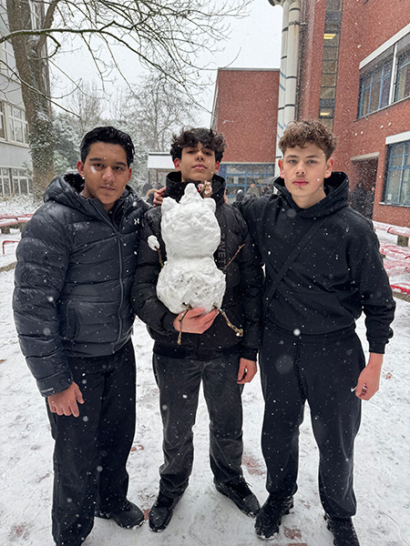 Wir wünschen allen Schülerinnen und Schülern ganz viel Spaß im Schnee, damit jeder den Winter in vollen Zügen genießen kann. Bitte denkt dabei daran, coole und kreative Sachen mit dem Schnee zu gestalten und auf das Werfen von Schneebällen zu verzichten. So bleibt der Spaß für alle sicher und fair.