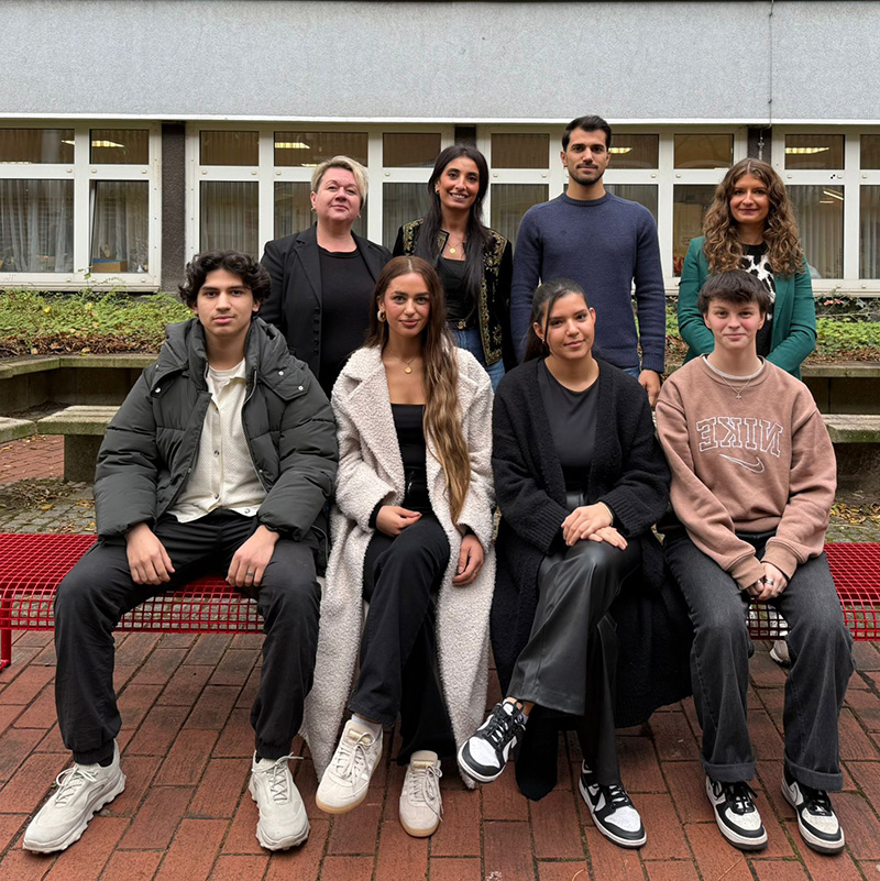 Die durch diese Aktionen gesammelten Spenden von 400 Euro – unter anderem ebenfalls durch den Waffelverkauf der Klasse 8d unter der Leitung von Herrn Zibell – wurden vollständig an das Frauenhaus Duisburg überreicht. Es handelt sich um eine wichtige Einrichtung, die Unterstützung für von Gewalt betroffene Frauen bietet. Die Spendenübergabe erfolgte symbolisch durch unsere Schülersprecher Sude Genctürk und Ameen Jnidi sowie die SV-Lehrerinnen Frau Franiczek und Frau Ulrich. Bei dem Treffen empfing uns Frau Bartl, die als Leiterin des Frauenhauses Duisburg tätig ist und eine unermüdliche Arbeit leistet und täglich vielen Frauen und Kindern einen Ort der Sicherheit und Würde schenkt.